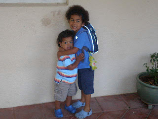 Looking fresh with the 'fro blown out, matching hair band, beaded necklace and polo. First day at the new pre-school.